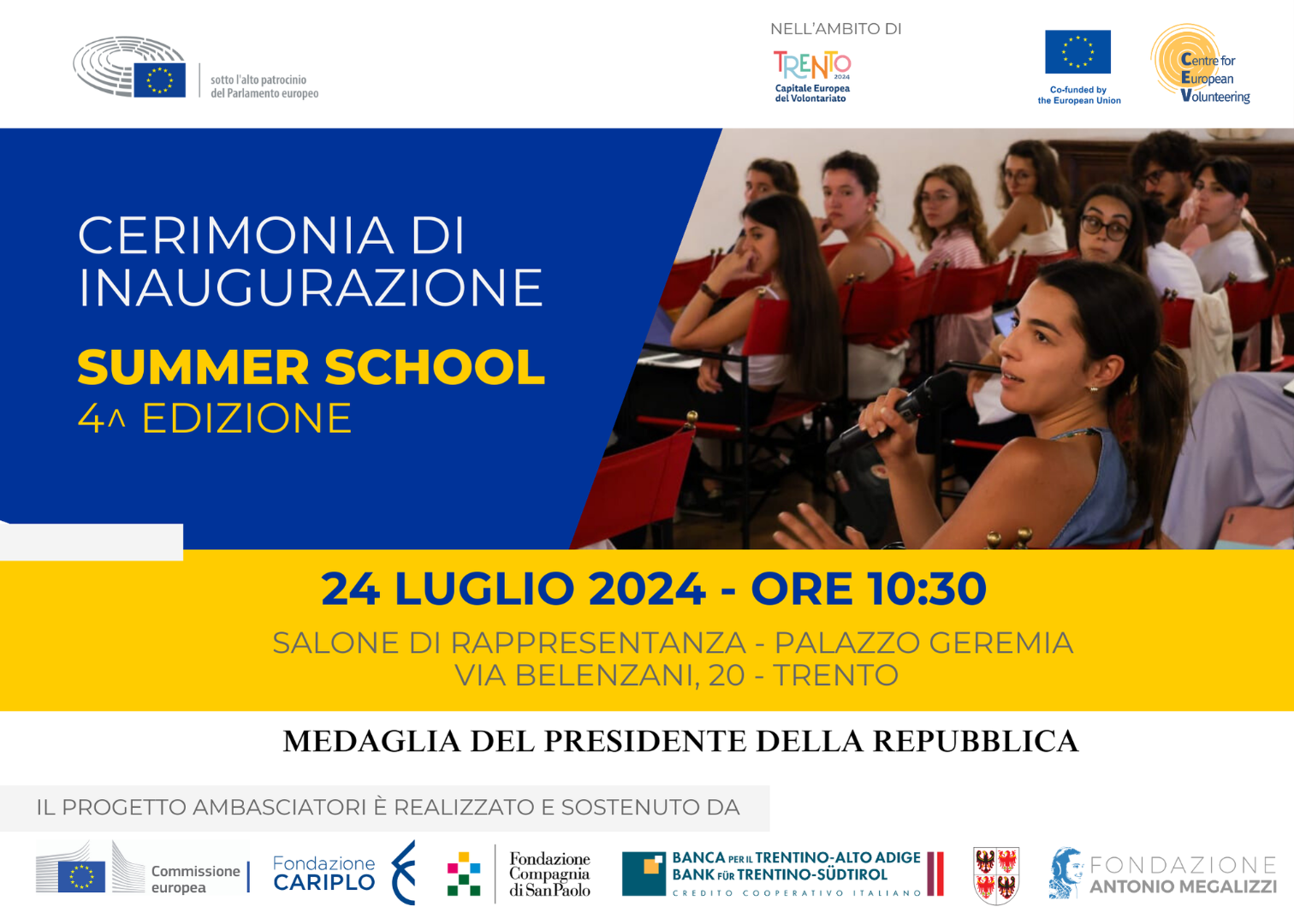 L'evento si svolge all'interno della Summer School della 4^ edizione del Progetto Ambasciatori, un'iniziativa di educazione civica che ha l'obiettivo di promuovere la conoscenza dell'Unione europea e una corretta informazione tra bambini, ragazzi e giovani adulti. La Summer School 2024 ha ricevuto la "Medaglia del Presidente della Repubblica" e l’alto patrocinio del Parlamento europeo.