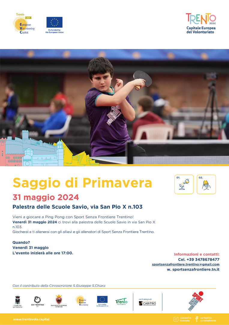 Venerdì 31 maggio 2024 vieni a giocare con gli allievi e gli istruttori di tennistavolo di Sport Senza Frontiere Trentino.